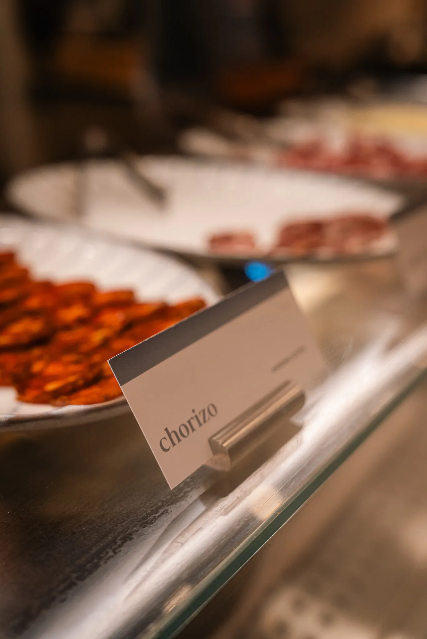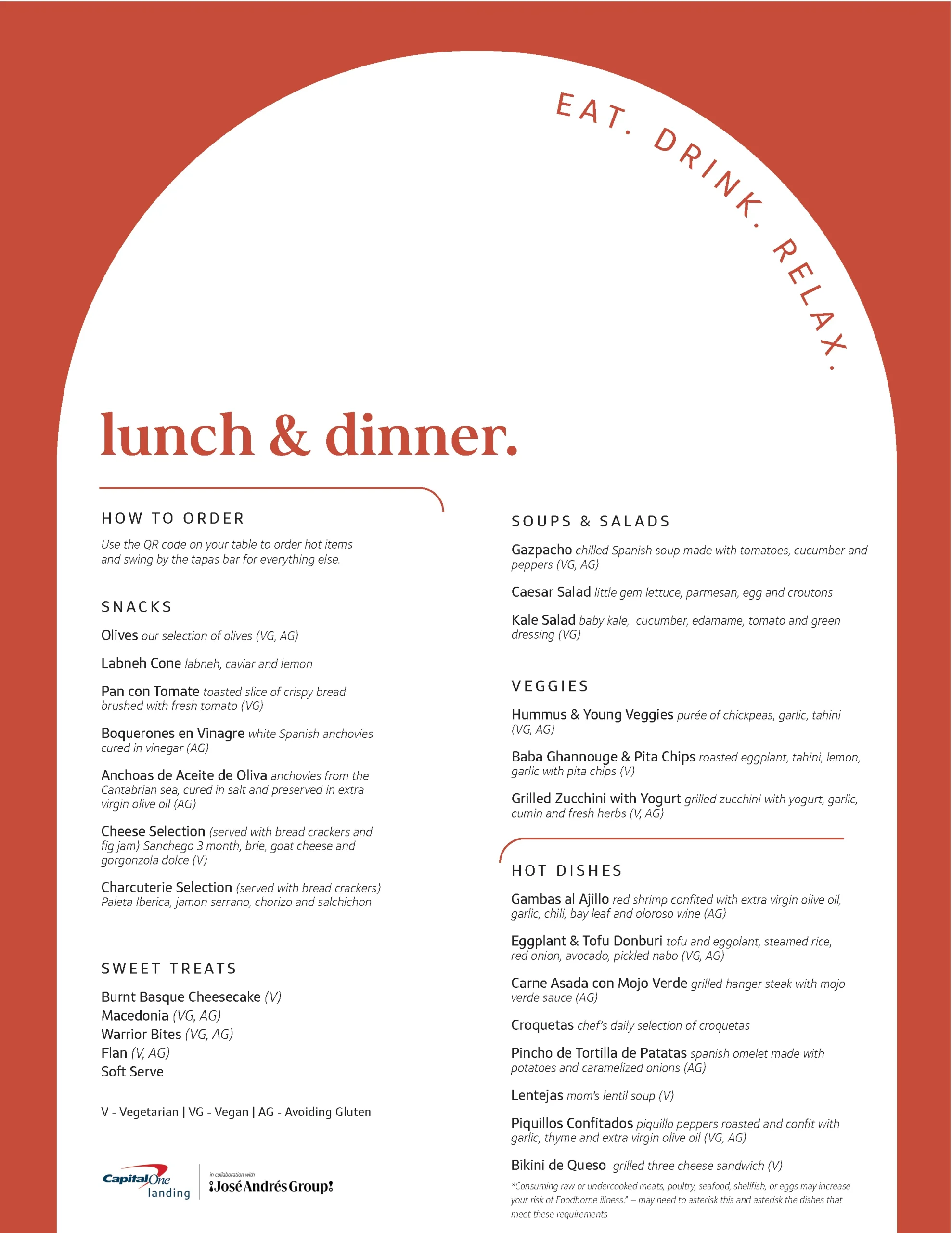 Once you’re seated at a table, you’ll find a QR code to scan which will pull up the menu to order hot items. For everything else, just swing by the tapas bar.