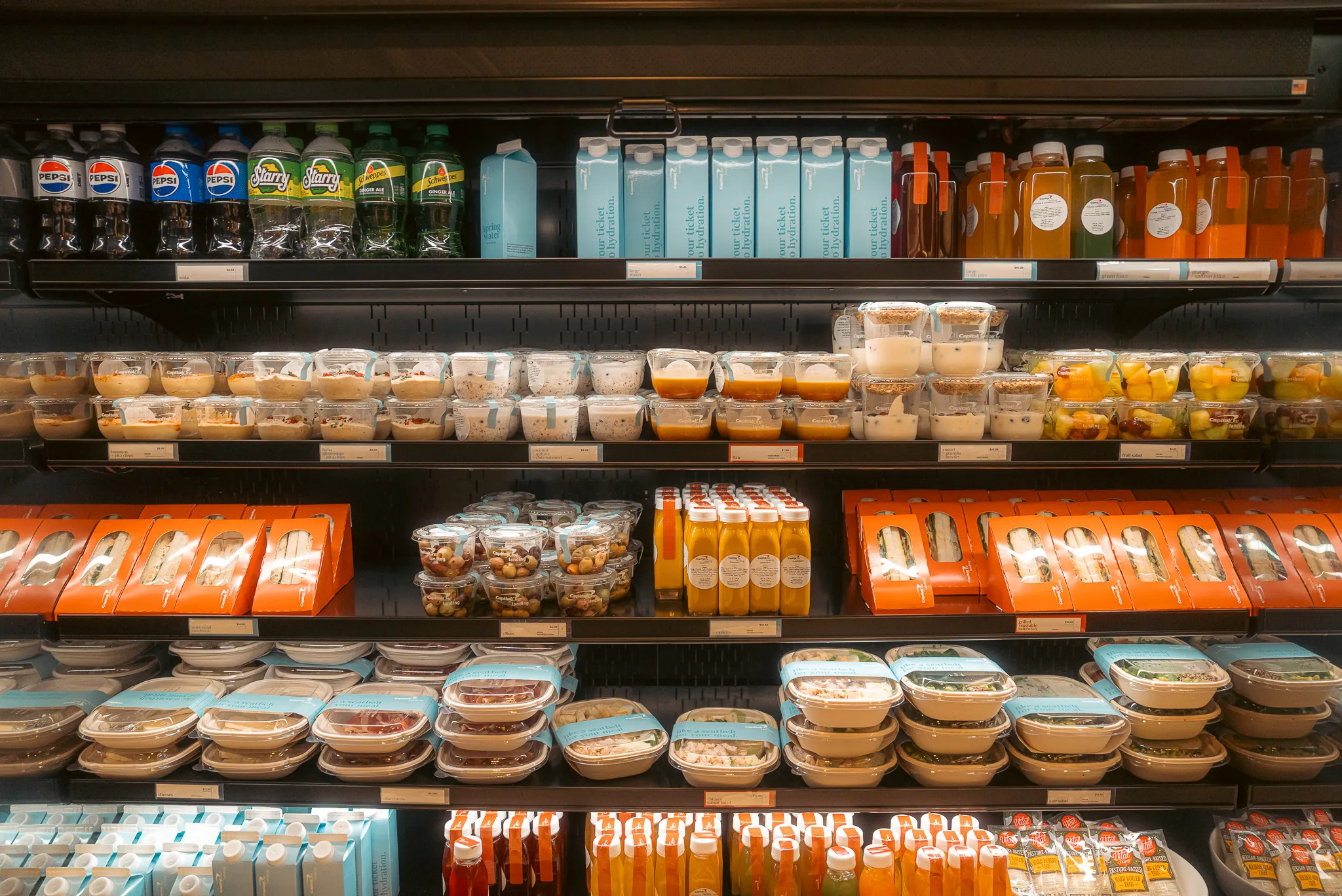 One unique feature of The Landing is the grab-and-go market, similar to what’s offered in the regular Capital One lounges—but with one major difference: it’s not free. We’re not entirely sure if this is intended to let all travelers, regardless of whether they’re Capital One cardholders, experience a taste of the lounge’s food and beverages. However, Capital One cardholders do receive a 50% discount on purchases.
