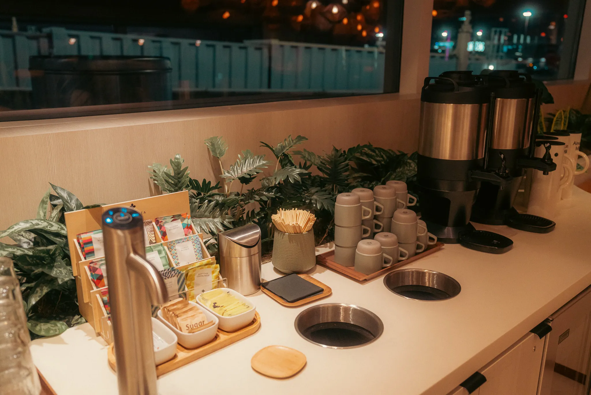 Located conveniently in Terminal 2’s National Hall near Concourse D, the Landing is easily accessible for travelers. The ambiance is sleek and modern, with warm lighting and comfortable seating that instantly relaxes you. And fear not about your devices dying – power outlets are conveniently located at every seat.